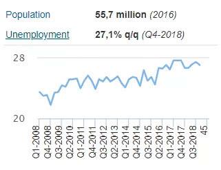 截至2018年第四季度,南非的失业率已经达到27.1%,并且从2008年开始从未低于20%。